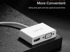 UGREEN Type-C to HDMI + VGA Converter (MM123) USB-C ilə təchiz edilmiş cihazları xarici displeylərə qoşmaq üçün yığcam və səmərəli həlldir. Funksionallıq və davamlılıq nəzərə alınmaqla dizayn edilmiş, o, həm HDMI, həm də VGA çıxışlarını dəstəkləyir, bu da onu təqdimatlar, əyləncələr və çox ekranlı quraşdırmalar üçün ideal edir.