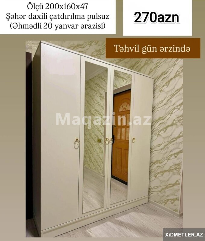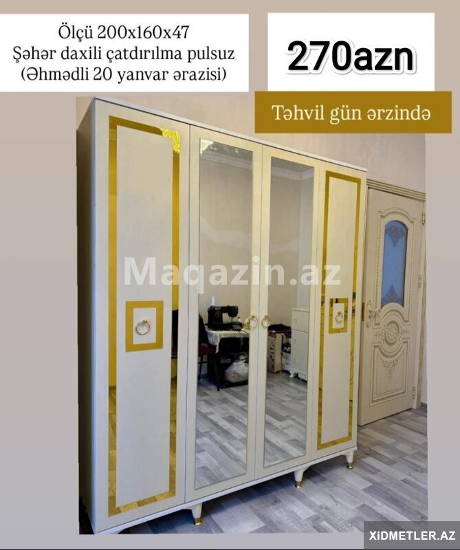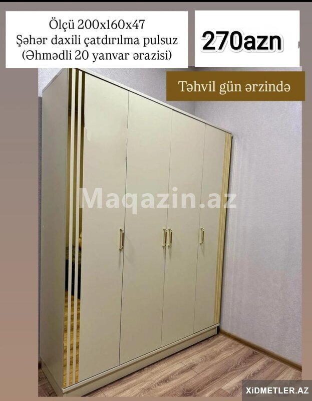 140 AznEndirim olunub topdan qiymete perakende satis.Teze 3 qapili dolablar qiymet 1 eded 150 Azn Tam laminant olanlar 170 Azn. Reng seçimi var Cox Serfeli odenisle unvana catdirilma Malın tipi: Dolablar və komodlar Malın