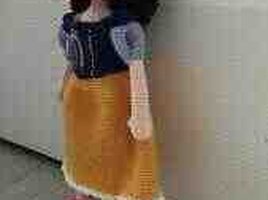 - Klassik nağıl qəhrəmanından ilhamlanan dizayn: qara saçlar, qırmızı bant, tünd göy korsajlı üst, açıq mavi qısa puff qol, xardal-sarı ətək və ağ kənar bəzəyi