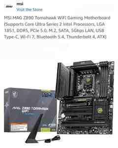 MSI MAG Z890 Tomahawk WiFi Gaming Motherboard (Supports Core Ultra Series 2 Intel Processors, LGA 1851, DDR5, PCIe 5.0, M.2, SATA, 5Gbps LAN, USB Type-C, Wi-Fi 7, Bluetooth 5.4, Thunderbolt 4, ATX)
