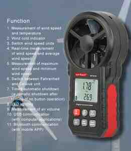 Model: WINTACT WT 87B bluetooth. Rəqəmsal külək sürəti ölçər, külək axın temperatur həcm ölçüsü, məlumat qeydiyyatçısı.