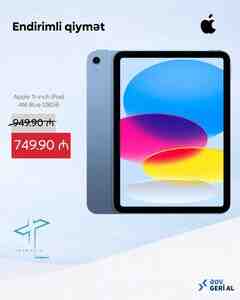 100 Azn iPad 11 (A16 Chip) 128GB iPad 11" (A16 Chip) – 128GB | Güclü, sürətli, sərfəli A16 Bionic Chip – Performansda böyük sıçrayış 11" yüksək keyfiyyətli ekran – Təhsil, film, oyun və gündəlik istifadə üçün