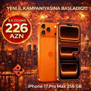 2099 Azn iPhone 17pro Max 256gb Cosmic Orange eSim - 2999azn iPhone 17pro Max 256gb Cosmic Orange NanoSim/eSim - 3249azn Qeyd olunan qiymətlər Yalnız NAĞD ödəniş. Hədiyyələr: 1. Adapter başlığı (20W)A klass 2. Ekran qoruyucu 3.
