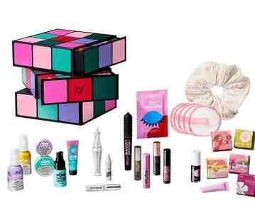- Göz və qaş: They"re Real! və ya Badgal Bang! tipli mini tuşlar, Gimme Brow+ və ya 24-HR Brow Setter kimi qaş məhsulları, göz altı parıldadıcı/yanlıq stiki mini ölçülərdə.