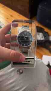 1500 Azn Casio kişi qol saatı – hibrid (analog + rəqəmsal) ekranlı model. Xüsusiyyətlər: - Paslanmayan polad çərçivə, qara siferblat - İkiqat göstəriş: analoq əqrəblər və aşağı hissədə rəqəmsal ekran - LED