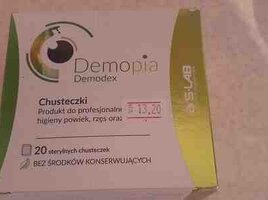 "Demopia Demodex" göz salfeti satılır. Qutuda 13 ədəd salfet qalıb.