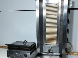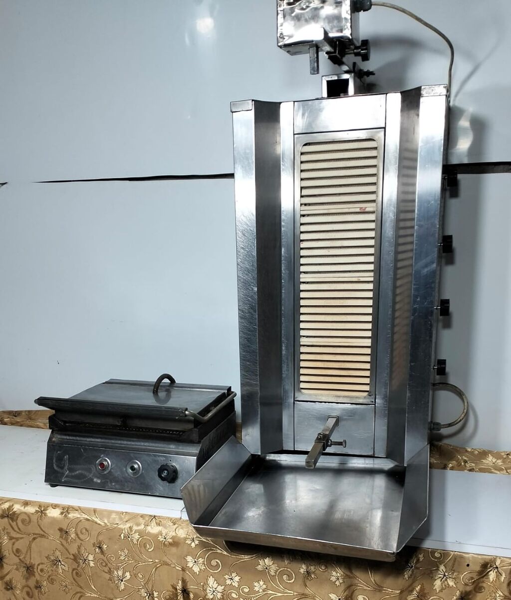 Şirkət570 Azn Donerxana avadanlığı Dönər aparatı 4 gözlu üsten matorlu Dönər bıçağı təzə Asılqan maqnit Konteyner salat qablari nerj + salat qabi tezgahı nerj Göyərti daskasi spatel Əlavə bıçağlar Naqqaslar Mayonez Qaşığı Et