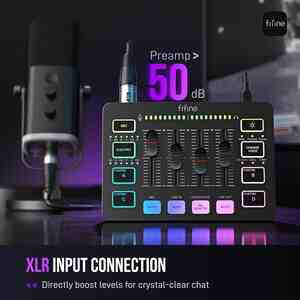 FIFINE Gaming Audio Mixer, Streaming RGB PC Mixer with XLR Individual Control Voice-AmpliGame SC3