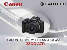 Canon, Canon fotokamera, Mirrorless kamera, EOS R50, RF-S 18-45 IS STM, Fotokamera, Video kamera, Fotoaparat, Vlog kamera, 4K kamera, APS-C sensor, Dual Pixel AF, Wi-Fi kamera, Bluetooth kamera, USB-C kamera, OLED vizor, Stabilizasiya, Azərbaycanda kamera, Cautech, ƏDV daxil, Köçürmə ilə alış, Zəmanətli, Yeni, Ev və ofis üçün, Sosial media üçün, Peşəkar fotoaparat, Foto və video, Fotokamera satış, Kamera komplekti
