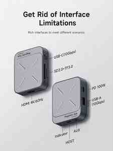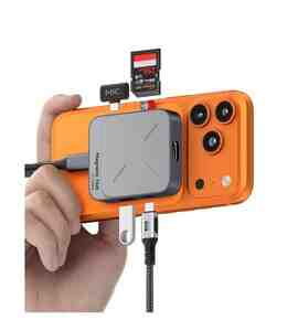 Hagibis Magnetic USB-C Hub (TC100) – 7-in-1 Magsafe Dock. Iphone və Android telefonlarınız üçün professional Hub həlli. Həm Aux və type-c mikrofon qoşa, eyni anda yüksək sürətdə fayllar köçürə, 4K hdmi bağlantısı yarada, telefonu 100w yüksək sürətdə şarj edə və yüksək keyfiyyətli ProRes görüntüləri birbaşa yaddaş kartına yaza bilərsiniz.