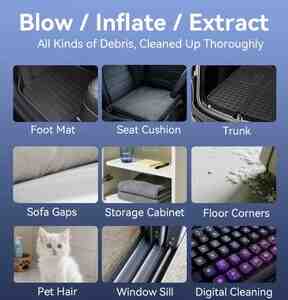 Tətbiqlər: kompüter və klaviatura təmizliyi, avtomobil salonu, toz və qırıntıların üfürülməsi, şişirmə işləri, nəm/su üfürüb qurutma, soyutma və s.