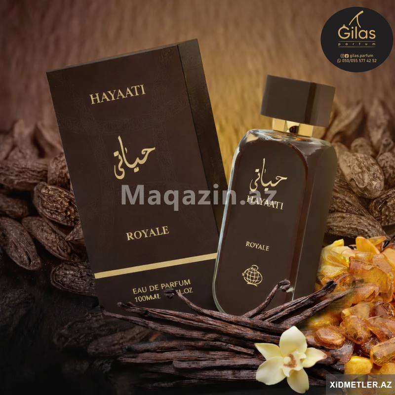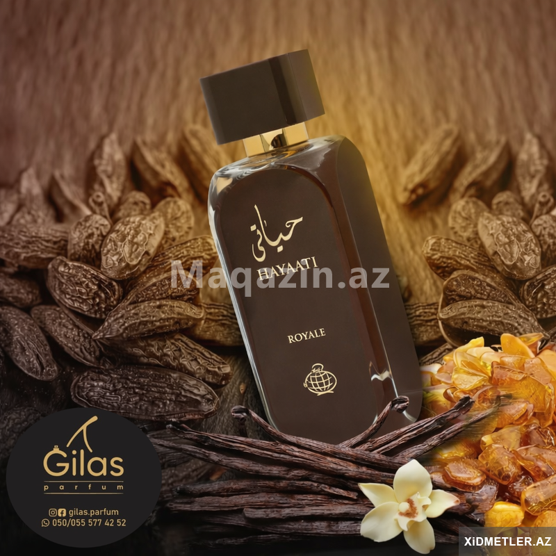 Hayaati Royale by Fragrance World Eau de Parfum for Unisex. Hayaati Royale unisex ətrinin qiyməti 100ml-38AZN. Qutularin üzərində Orjinal Ştrix-kod və Original Fragrance World firmasının holoqraması. Orijinal Fragrance World firmasının dubaydan gəlmə parfumudur. Made in U.A.E. Əsl hədiyəlik ətirdir. Şəkillərdə gördüyünüz kimi gözəl qablaşdırılması və super qalıcı qoxusu var. Fragrance World Hayaati Parfumun bütün çeşidləri bizdə hər zaman mövcuddur.
