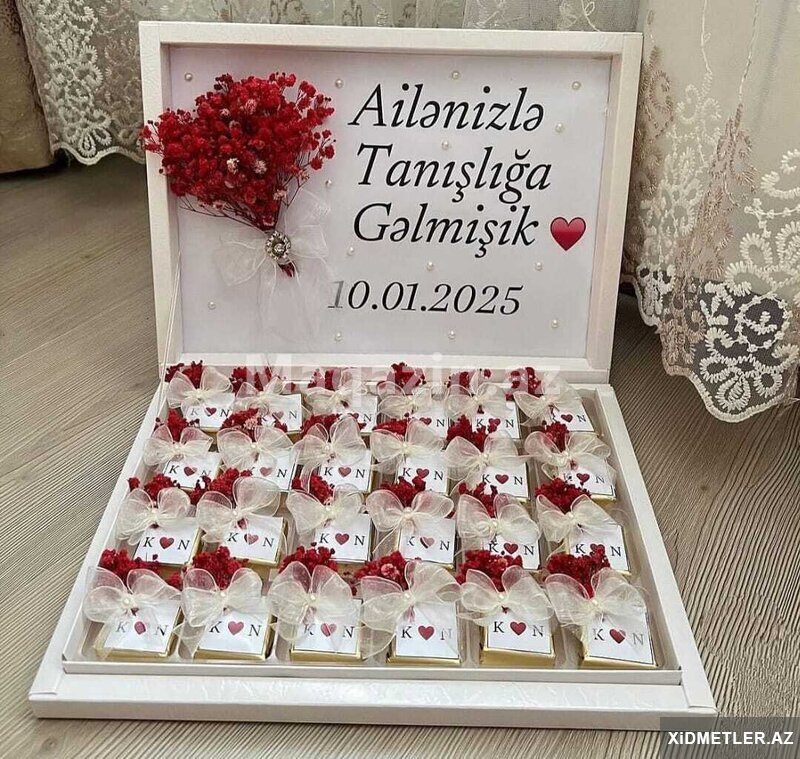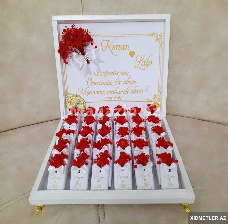 1700 AznSunnet Sokolad xoncalari sifarisle hazirlanir.İstenilen olcude, rengde ve dizaynda hazirlaya bilerik.Sifaris ucun whatsapa yaza ve ya zeng ede bilersiniz.