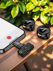 Hoco L22 Bright 2-in-1 Simsiz Mikrofon, Qutu, iPhone, Type-C, ENC, Omnidirectional ilə.
