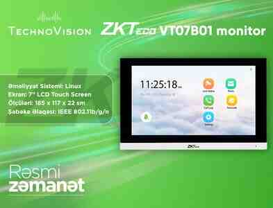 ZKTeco VT07B01, ağıllı qapı idarəetməsi və video nəzarəti təmin edən Smart IP Monitor sistemidir. İstifadəsi rahat interfeysi və geniş yaddaş dəstəyi ilə fərqlənir. Müxtəlif təhlükəsizlik və nəzarət sistemlərinə inteqrasiya olunaraq, ev və müəssisələrdə tam təhlükəsizlik mühiti yaradır.