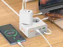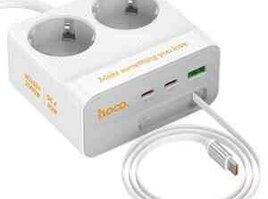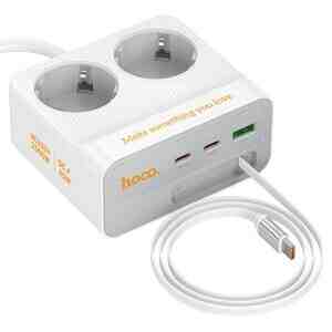 Hoco AC28 Descanso, 2500W iki AC rozetkalı elektrik zolağı, tək USB-A və iki Type-C çıxışı, Type-C kabel, sürətli doldurma protokollarını dəstəkləyir, AB/GER fiş, 2m kabel.
