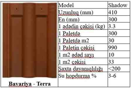 Malın tipi: Dam örtükləri