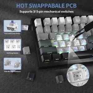 15 Azn Redragon K617 FIZZ 60% Mechanical Wired RGB Gaming Keyboar Redragon K617 FIZZ 60% Wired RGB Gaming Keyboard, 61 Keys Compact Mechanical Keyboard w/ White & Grey Mixed-Colored Keycaps, Linear Red Switch, Pro