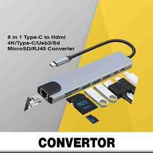 Konverter 8 in 1 Type-C to Hdmi 4K, Type-C, Usb3, Sd-MicroSD, RJ45