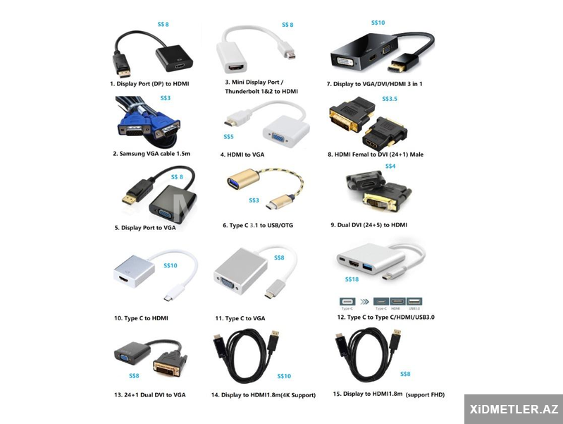 Hər növ kabel, konvertor və hub var satışda .Qiymətlər məhsulun kefiyyətinə görə dəyişir .