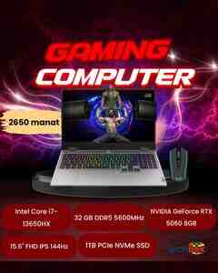 1530 Azn Salam magazadır məhsul yenidir. Zəmanət yazılı verilir - 1İL. CPU: İntel(R) Core(TM) i7-14650HX GFX: NVİDİA GeForce RTX 4060 8GB RAM: 16GB DDR5 5600MHz SSD: 512GB NvMe Ekran: 16.0 İPS WUXGA 165Hz Klaviatura: