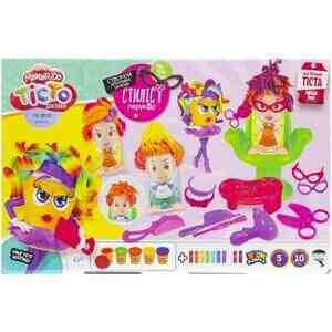 Тесто для лепки "Стилист-парикмахер" от Master Do позволяет создавать различные прически. В комплект входят 10 брикетов теста для лепки, 5 баночек теста, экструдер в виде кресла, 2 кресла, 2 стека, 2 обруча, 2 пары очков, формочка-стол, формочка в виде фена, расческа, ножницы, фен и инструкция.