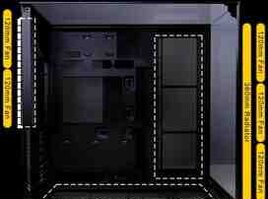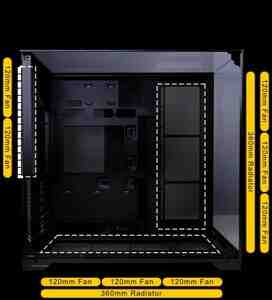 Fan dəstəyi: Üst (3 x 120 mm və ya 2 x 140 mm), Yan (3 x 120 mm), Alt (3 x 120 mm), Arxa (2 x 120 mm)