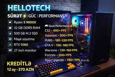 1549 Azn Masaustu Komputer RTX 5060 8GB + Core i5 14600K prosessor ile butun yeni nesil oyunlari oynuya bileceyiniz gaming komputerimizi satisa cixardiq.(Oyunlarin Fps testleri asagida qeyd