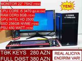 4249 Azn Salam Tək prosessor: 295 AZN Manitorlar birlikdə dəst: 370 Azn Məhsula 6 ay zəmanət verilir Parametrlər: •Prosessor: Intel Core i5 4-cü nəsil •RAM: 8GB DDR3 •Yaddaş: 256 Gb SSD •Videokart: İntel HD graphics •Monitor: