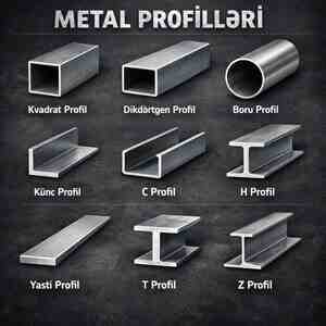 Kvadrat, düzbucaqlı, boru, künc (L), C, H, T və Z tipli metal profillərin satışı.