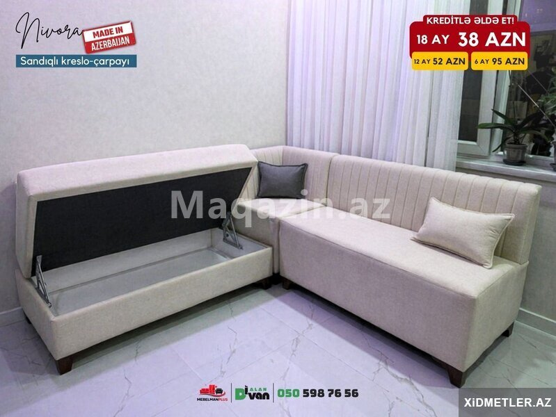 174 Azn Künc Divan Ayrı Ayrı Hissələrə Bölünə Bilən Çox Keyfiyyətli Və Ən Əsas Baza Var Malın tipi: Divanlar və kreslolar