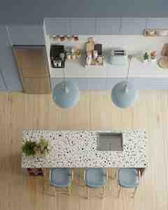 Erqonomik Ada: İş sahəsini qabyuyan və rahat səhər yeməyi guşəsi ilə birləşdirir.
