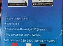 220 AznXemir ve krem ucun başlıqları var profesional maldır Malın növü: Blenderlər, mikserlər, mətbəx kombaynları Yeni: Bəli Çatdırılma: Bəli