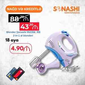 300 Azn El blenderi Super mikser Türkiyə istehsalı Professional modeller Modellərinə görə qiymətləri dəyişir S-15 model 150 watt güc - 250 Azn S-25 model 250 watt guc -350 Azn S-50 model 750 watt güc iki başlıq ilə blender ve