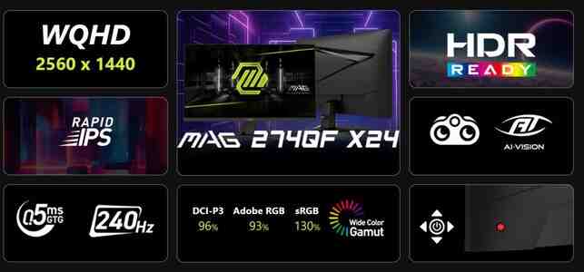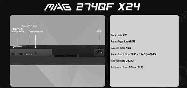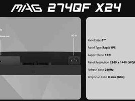 MSI Gaming MAG 274QF x24 27" ,2 K 2560 x 1440 (WQHD) ,240Hz ,0.5ms,250nits ,Rapid IPS,DP1.4a ,2x