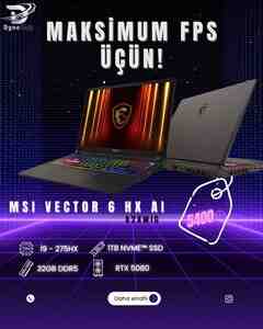 1049 Azn Model:MSI Vector 17 HX AI A2XWHG Gaming Laptop -17" QHD+ IPS 240Hz -Intel Core Ultra 9 275HX -NVIDIA GeForce RTX 5070 Ti 12GB -32GB DDR5 5600MHz -1TB PCIe NVMe SSD -Windows 11 Home — -an serfeli qiymet -1 il