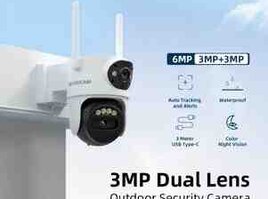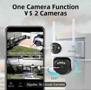 - İki linzalı 6MP ümumi görüntü (3MP + 3MP): yuxarı linza həyəti/driveway üçün geniş görüntü, alt linza giriş və hərəkəti izləmə üçün.