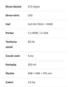 Malın tipi: Monitorlar və ekranlar