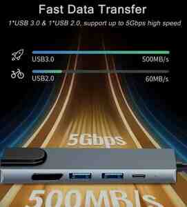 369 AznAşağıdaki portlar mövcuddur. 1. USB Type c. 2. HDMI — 4k görüntü dəstəkləyir. 3.VGA 4.Ethernet (RJ-45) 5. Micro SD 6. SD 7. 3 ədəd sürətli USB 3.0 8. 3.5 mm jack Malın tipi: Kabellər və adapterlar