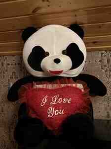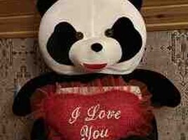 Böyük ölçülü panda oyuncağı – qucaqlamalıq, yumşaq plyuş materialdan. Qara-ağ panda dizaynı, parlaq gözlər və balaca burun detalları ilə. Qolunda qırmızı parıltılı ürək yastığı tutur; üzərində "I Love You" yazısı var və kənarları şəffaf qırmızı volanla bəzədilib. Romantik hədiyyə, Sevgililər Günü, ad günləri və sürprizlər üçün ideal. Otaq dekoru kimi də gözəl görünür. Yüngül, toxunuşa zərif, asan təmizlənən parça. Şəkildə göründüyü kimi oturaq formadadır və şəkil çəkilişləri, hədiyyə səbətləri üçün uyğun aksesuar.