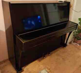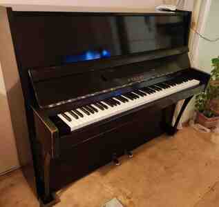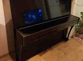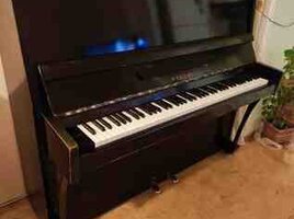 143.99 AznAkustik upright pianino – "Красный Октябрь" (КРАНО), sovet istehsalı. Xüsusiyyətlər: - Korpus: klassik qara rəngli, ön paneldə dekorativ oyma naxış. - Klaviatura: tam ölçülü 88 klaviş, üzərində not işarələri