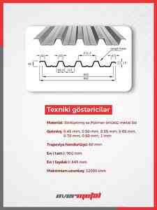* Qalınlıq: 0.45, 0.50, 0.55, 0.60, 0.65, 0.70, 0.80, 1.00 mm