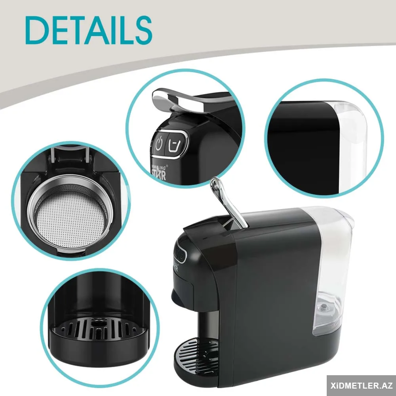 Winning Star ST-9745 kapsul qəhvə maşını, 1400 Vt, 0.6 L, Dolce Gusto, Nespresso, üyüdülmüş qəhvə və kapsulları dəstəkləyir.