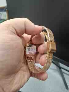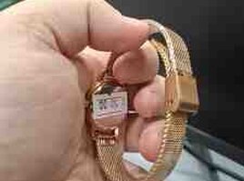 335 Azn Qızılı rəngdə, kvadrat formalı Cartier Santos qol saatı. Ağ rəngli siferblatda Roma rəqəmləri ilə saat işarələri var. Qolbağı qızılı rəngdə metaldan hazırlanıb. Dəbli və zərif görünüşü ilə hər zövqə uyğun aksesuardır.
