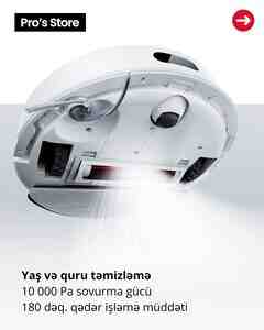 200 Azn Brend: Dreame X40 Ultra Sovurma gücü: 12000 Pa Enerji yığma müddəti: 1.5 saat Təmizləmə sahəsi: 300 m² Təmizləmə növü: Quru və nəm Toz qabının həcmi: 0.3, 3.2 lt Su qabının həcmi: 0.08, 4.5 lt Smartfon ilə idarəolunma:
