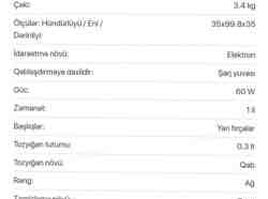 Elan kodu: 249334Kateqoriya Məişət texnikası