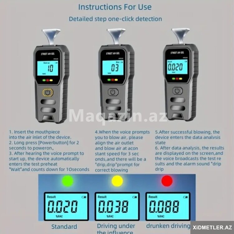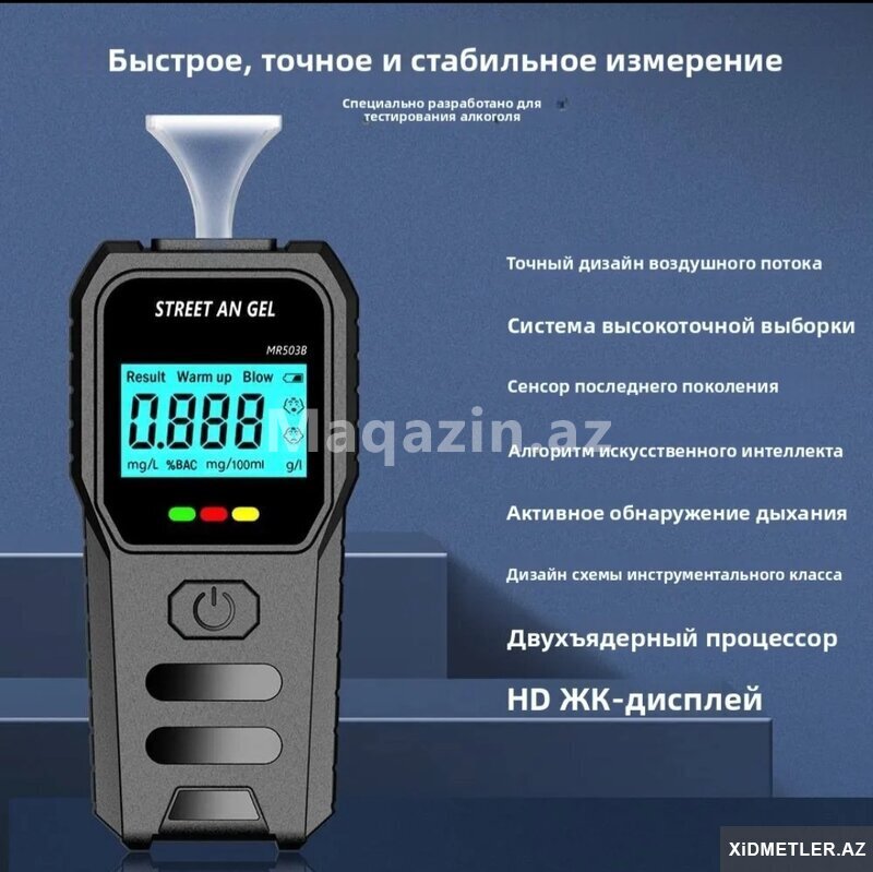 Alkotester. Model: MR-503B. Səs yayımı və yüksək dəqiqlikli LCD displeyli. ● Təmassız təmizləyici respirator. ● Qaz axını yolunun dəqiq dizaynı, yüksək dəqiqlikli sensorların ən son nəslinə daxil olmaqla [читат далше]