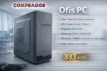 Hazır Ofis PC — Intel Core i5 / 8GB RAM / 256GB SSD. Ofis və gündəlik istifadə üçün ideal kompüter sistemi. Sürətli işləmə, stabil performans və tam hazır vəziyyətdə təqdim olunur. Intel Core i5 prosessor [читат далше]