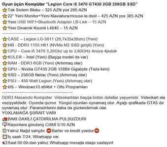 Oyun üçün Kompüter "Legion Core i5 3470 GT430 2GB 256GB SSD". Tək Sistem Bloku – 325 AZN yox 285 AZN. 22" Yeni Monitor+Yeni Klaviatura/mouse-la dəst – 425 AZN yox 385 AZN. Yeni USB WIFI+Bluetoot [читат далше]