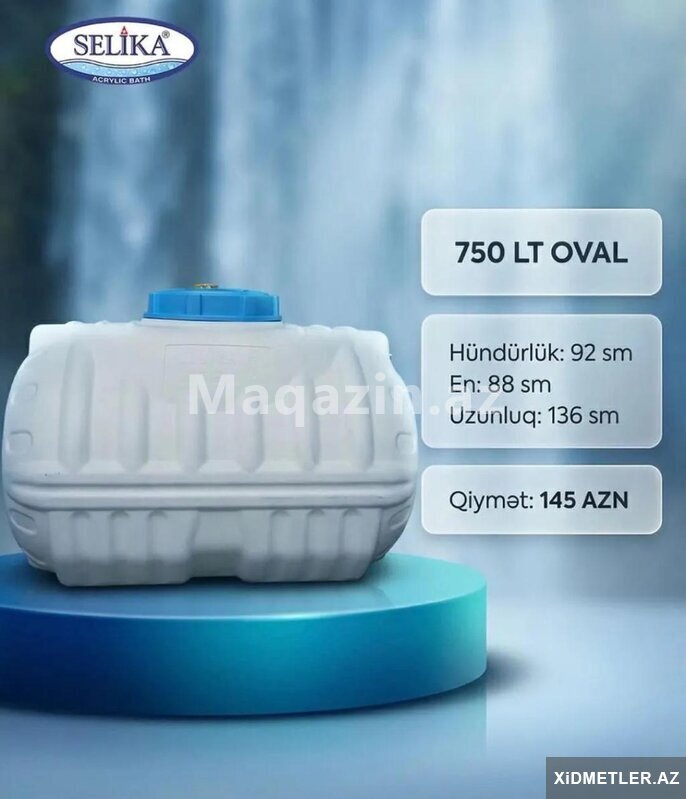 SELİKA su çəni – 750 lt, oval model. - Həcm: 750 litr. - Ölçülər: hündürlük 92 sm, en 88 sm, uzunluq 136 sm. - Oval konstruksiya: dar məkanlarda rahat yerləşdirilir. - Yuxarı hissədə iri servis qapağ [читат далше]